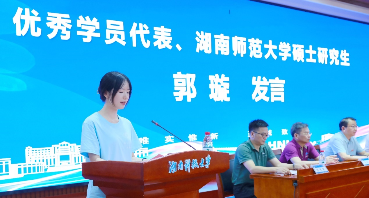 湖南师范大学高等教育学专业硕士研究生郭璇作为优秀学员代表发言,从感谢、收获、感悟三方面和大家就行了分享交流。她表示,将以此次暑期公司的学习为契机,以更加昂扬的奋斗姿态,实现青春的一路生花。