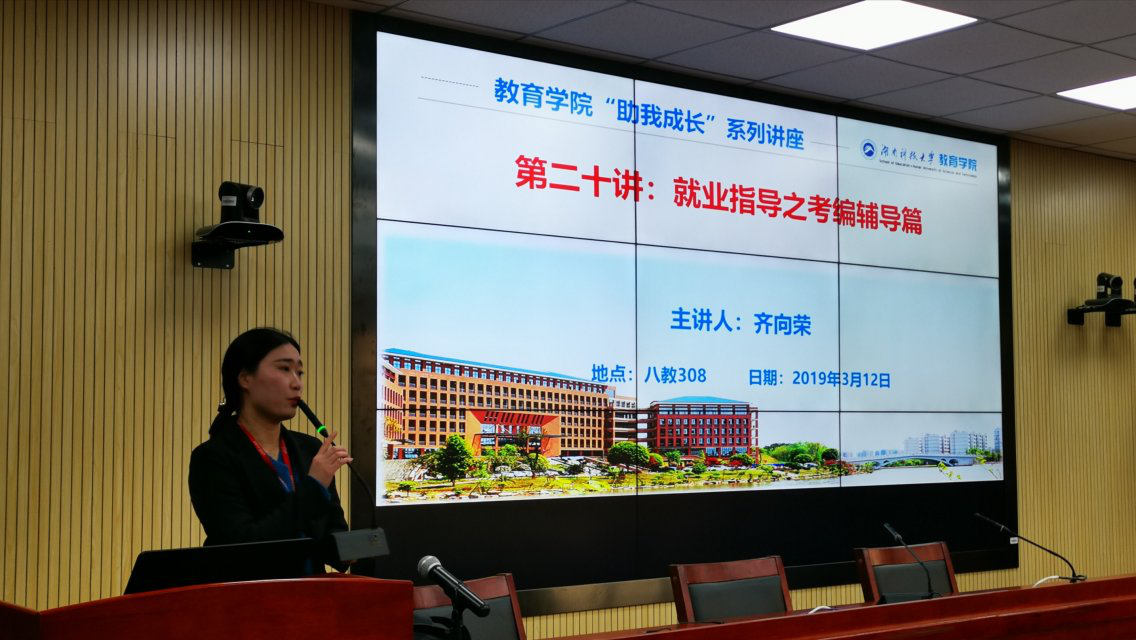 2019年3月12日14点,教育学院特邀中公教育金牌讲师齐向荣作为主讲嘉宾,在第八教学楼308会议室为公司员工带来“助我成长”系列讲座第二十讲:就业指导之考编辅导篇,准备考编和有考编意愿的员工到场聆听。