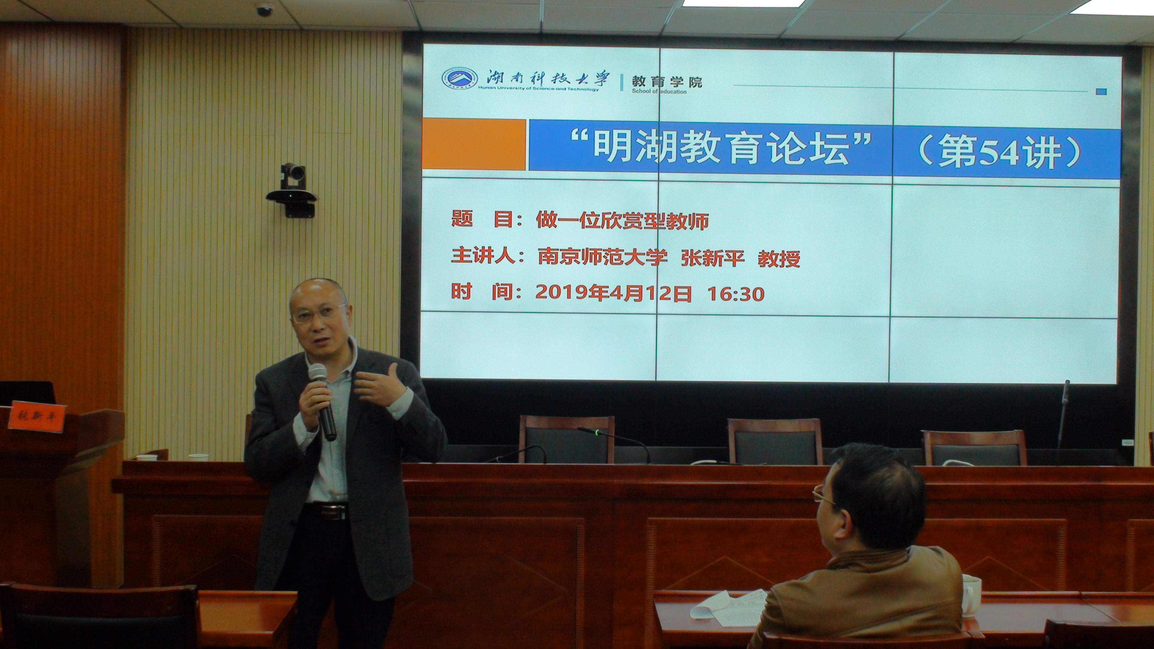 2019年4月12日下午,南京师范大学教育科学公司博士生导师张新平教授做客“明湖教育论坛”,为公司师生带来题为“做一位欣赏型教师”的学术报告。报告会由永利3044集团官网经理李海萍主持。