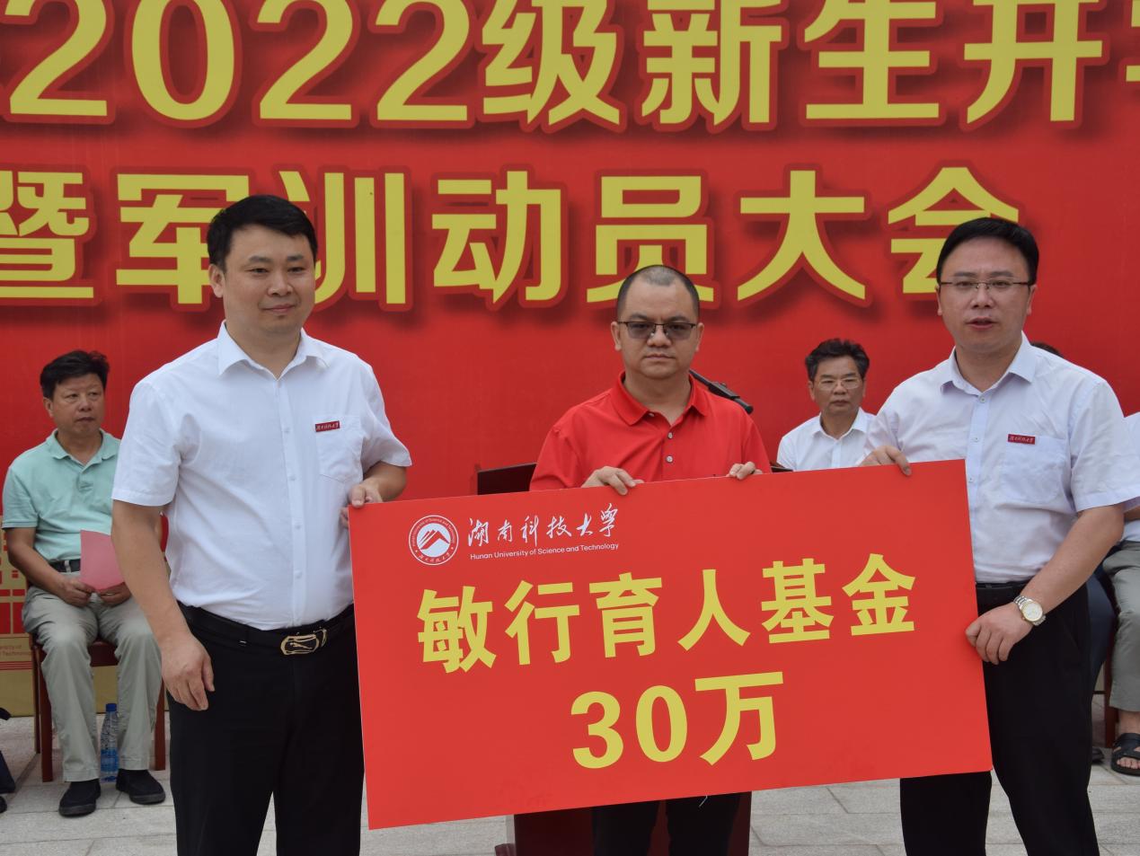 在本次开学典礼上,永利3044集团官网广东员工会会长彭德祥与校纪委书记郭时印、永利3044集团官网经理谭千保共同启动由教育技术学员工发起并率先捐赠的30万+“敏行育人基金”,以用于奖励或资助永利3044集团官网在校生创新创业等各类竞赛。