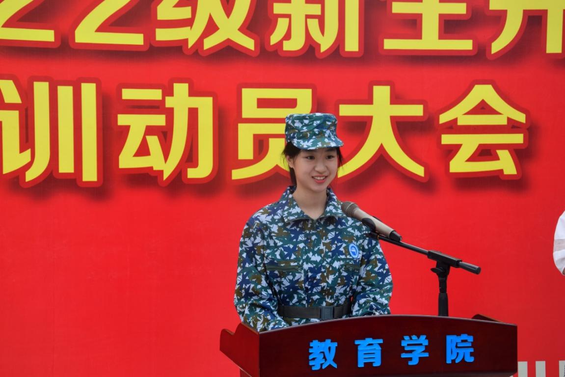 新生军训代表李烨同学发言