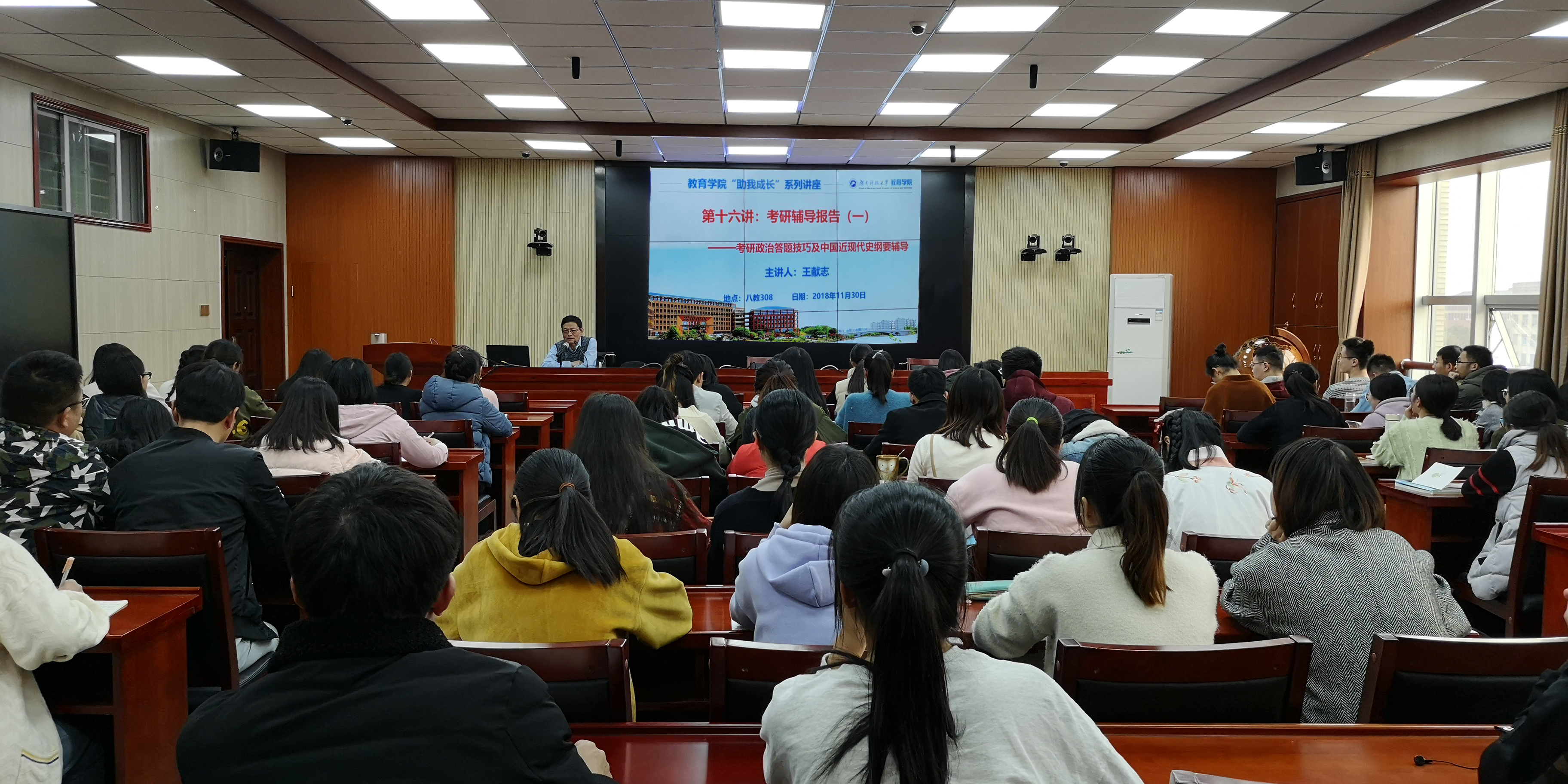 2018年11月30日14:00,公司特邀马克思主义公司王献志教授作为主讲嘉宾,在第八教学楼308会议室为公司员工带来“助我成长”系列讲座第十六讲:考研辅导报告(一)——考研政治答题技巧的讲座。永利3044集团官网考研员工到场聆听。