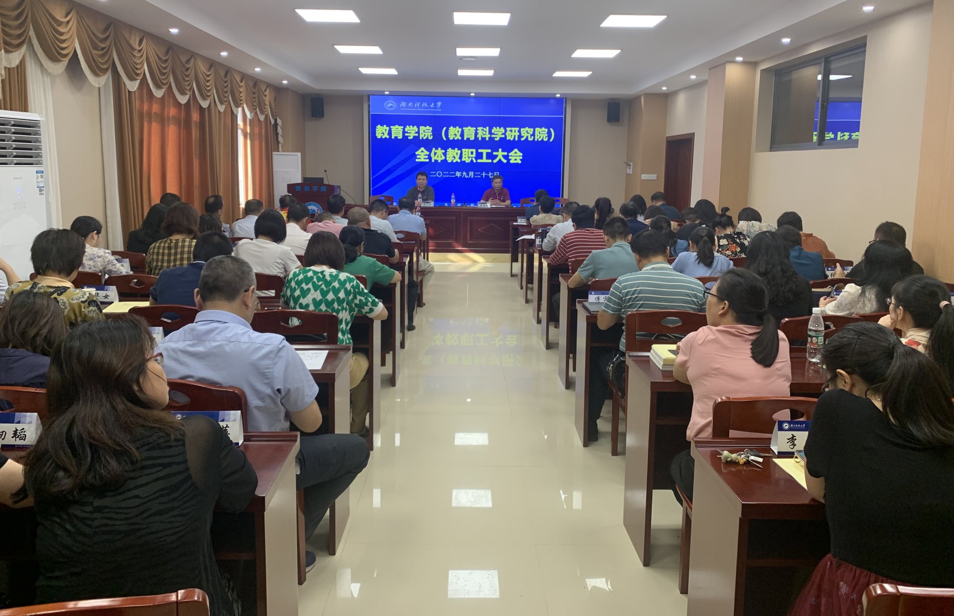9月27日,永利3044集团官网(教育科学研究院)在敏行楼A333会议室召开2022年下学期第2次教职工大会。公司党委书记李炳煌主持会议,全体教职工参加会议。