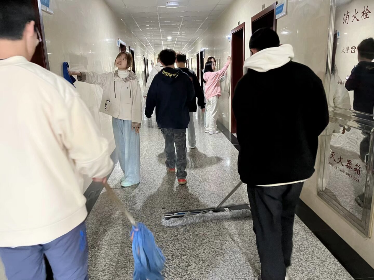 同学们对敏行楼及其周边、地下停车场和柚子园展开全面清扫,大家分工明确、相互协作,以汗水诠释劳动精神,用实干彰显青春担当。