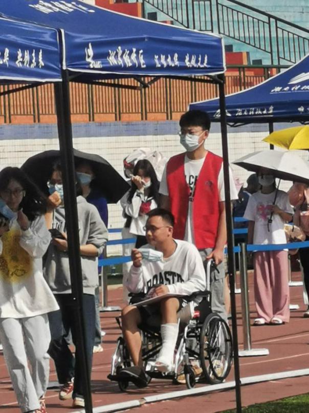 核酸采样现场井然有序,高效进行。针对刚刚做完手术行走不便的同学,由志愿者全程跟随,热情服务。最终公司员工以提前半小时的速度完成核酸检测,充分展现出永利3044集团官网学子的风采和担当。