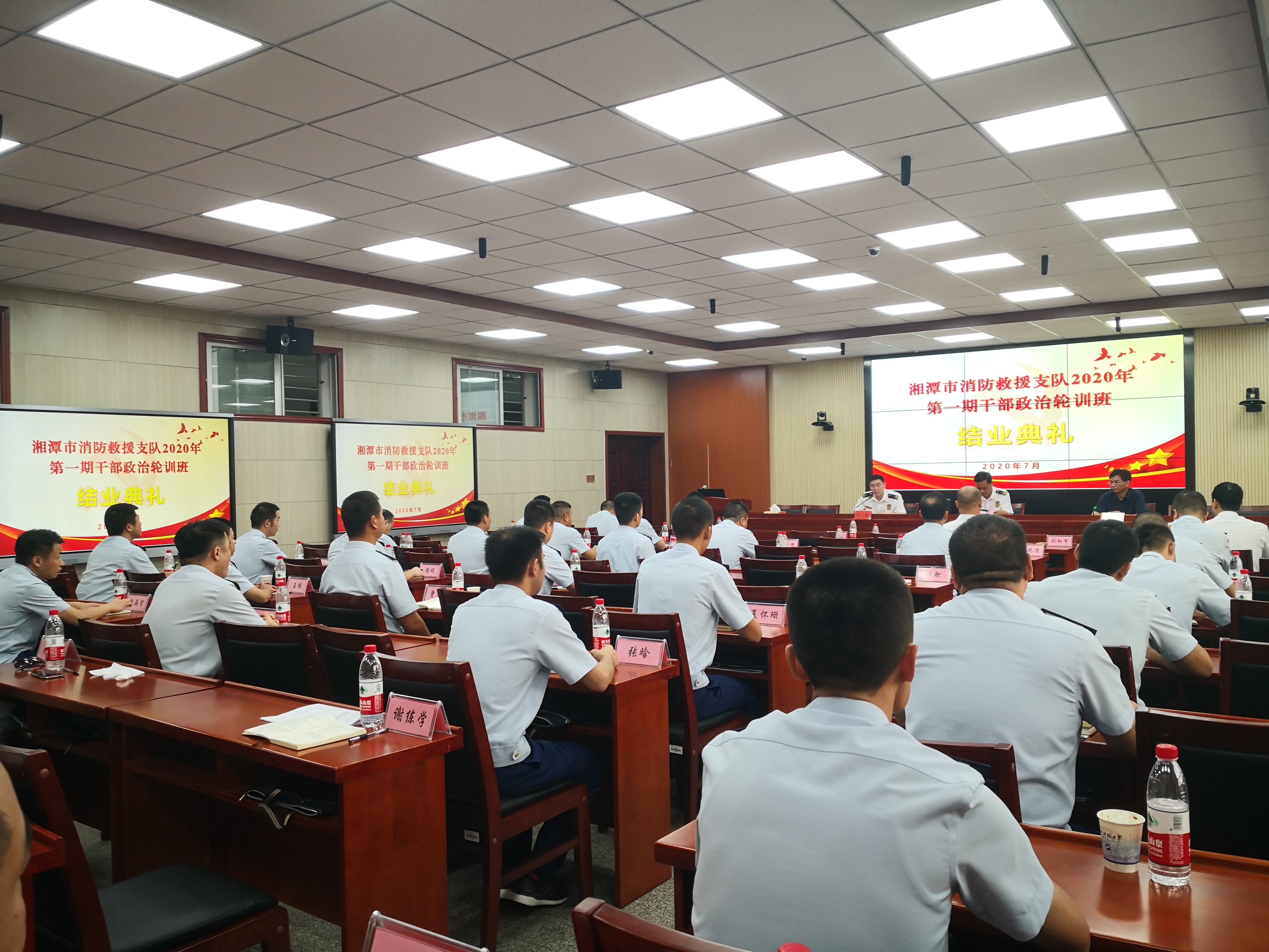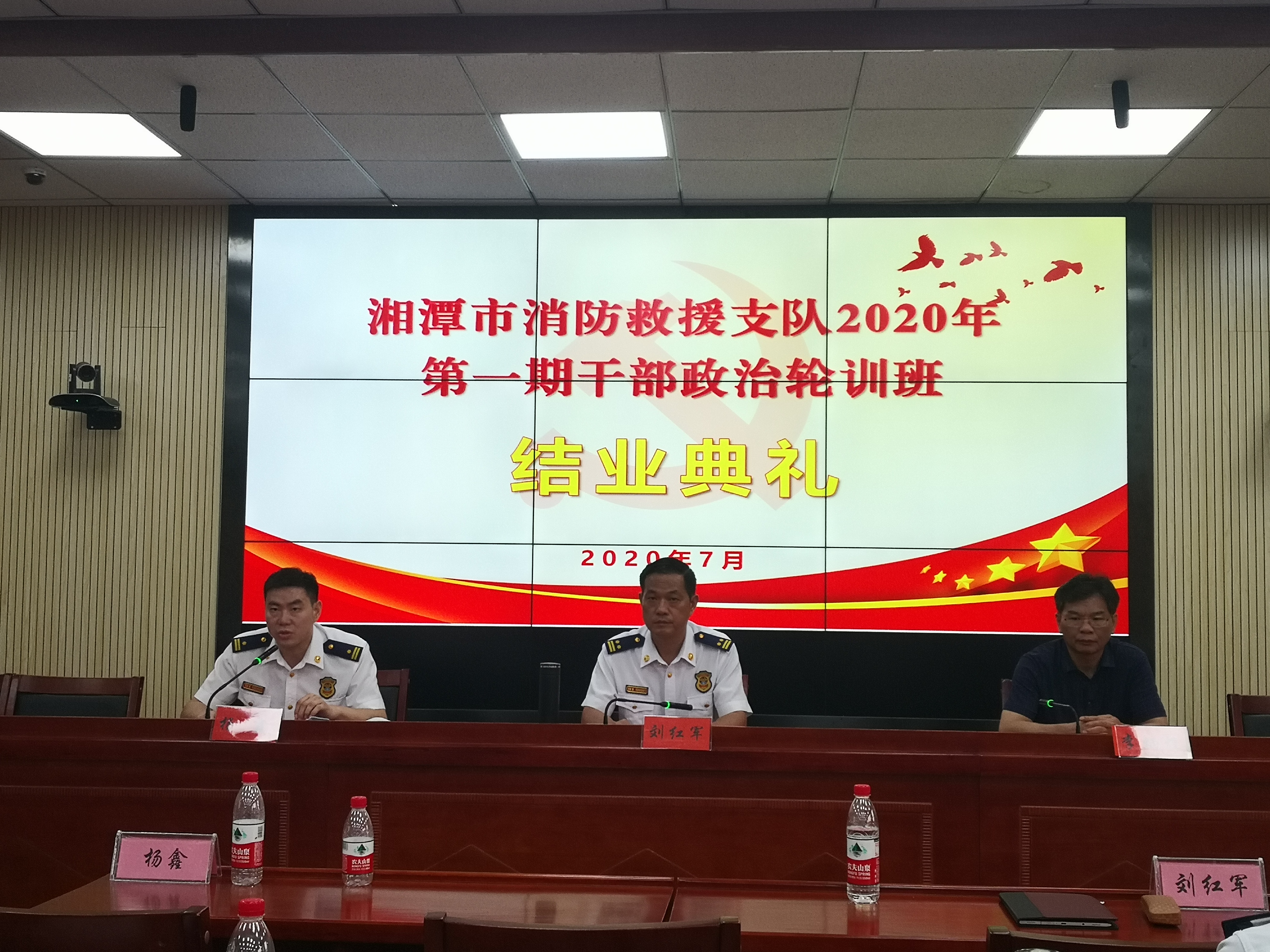 2020年7月17日下午,湘潭消防救援支队2020年第一期干部政治轮训班结业典礼在公司举行,培训班学员顺利结业。结业典礼由湘潭市消防救援支队副支队长杨鑫主持。
