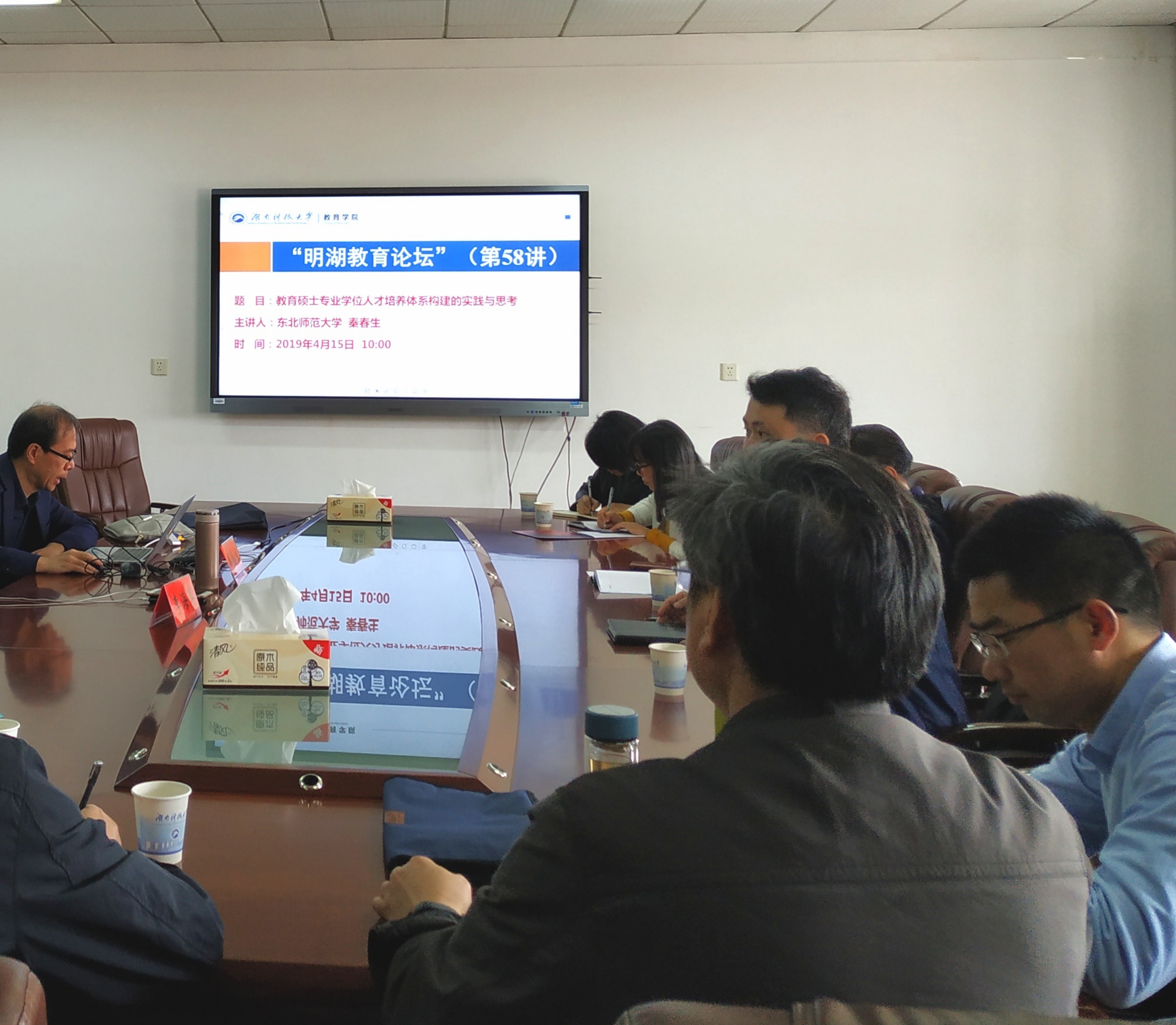 2019年4月15日上午,东北师范大学秦春生处长做客“明湖教育论坛”,为公司师生带来题为“教育硕士专业学位人才培养体系构建的实践与思考”的学术报告。报告会由永利3044集团官网经理李海萍主持。
