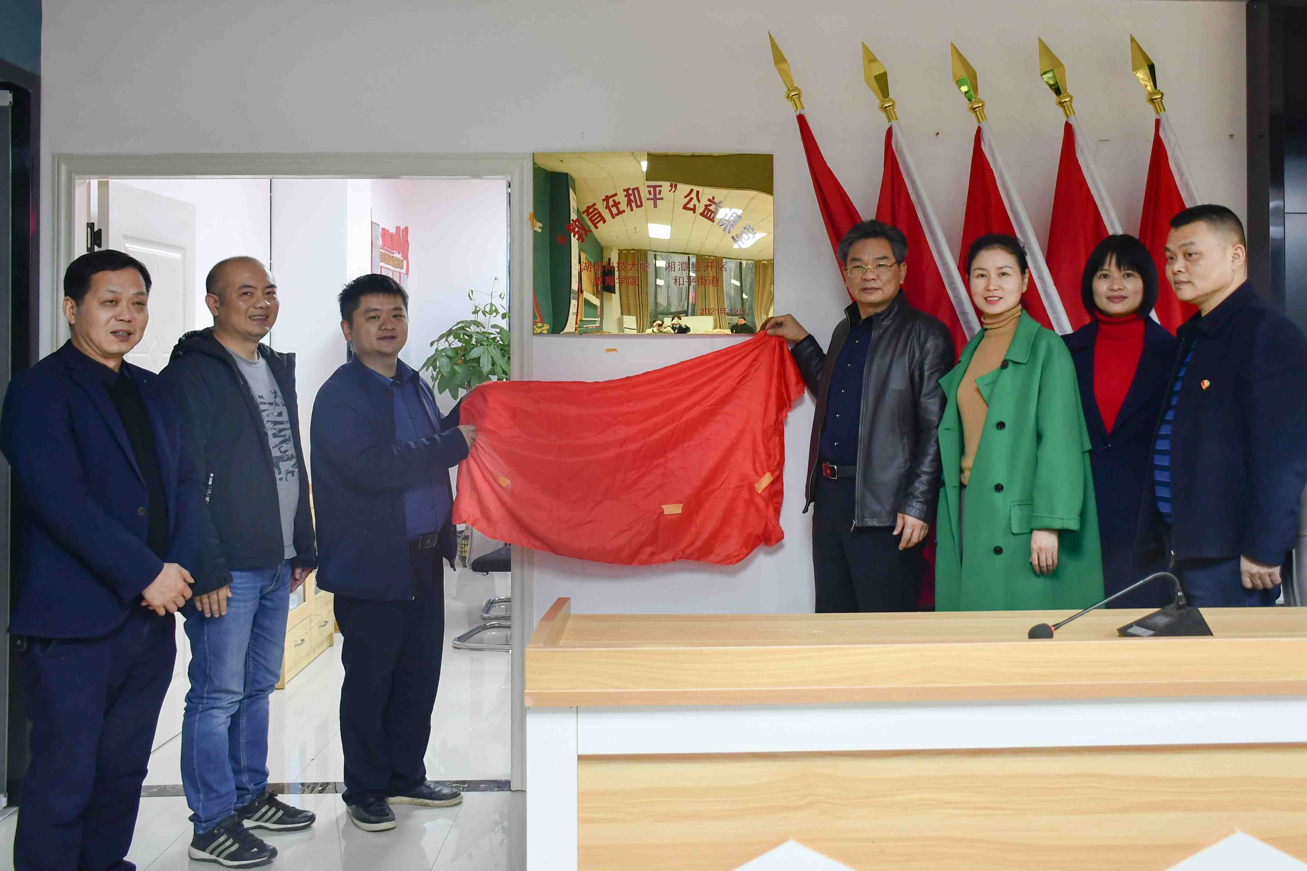 2021年12月23日下午4:30,永利3044集团官网—和平街道“教育在和平”校地合作公益课堂系列活动揭牌仪式在乐塘社区党员活动室顺利举行。和平街道党工委书记徐韬,和平街道党工委副书记、办事处主任冯志辉,和平街道党工委委员、人大联工委主任胡振东,和平街道党工委委员、政协联工委主任、和平街道办事处副主任杨建辉,和平街道党工委委员、组织委员杨稳桥,和平街道乐塘社区党总支书记、居委会主任李文斌,永利3044集团官网公司党委书记李炳煌,公司党委副书记刘婕,永利3044集团官网辅导员练素华出席本次活动。