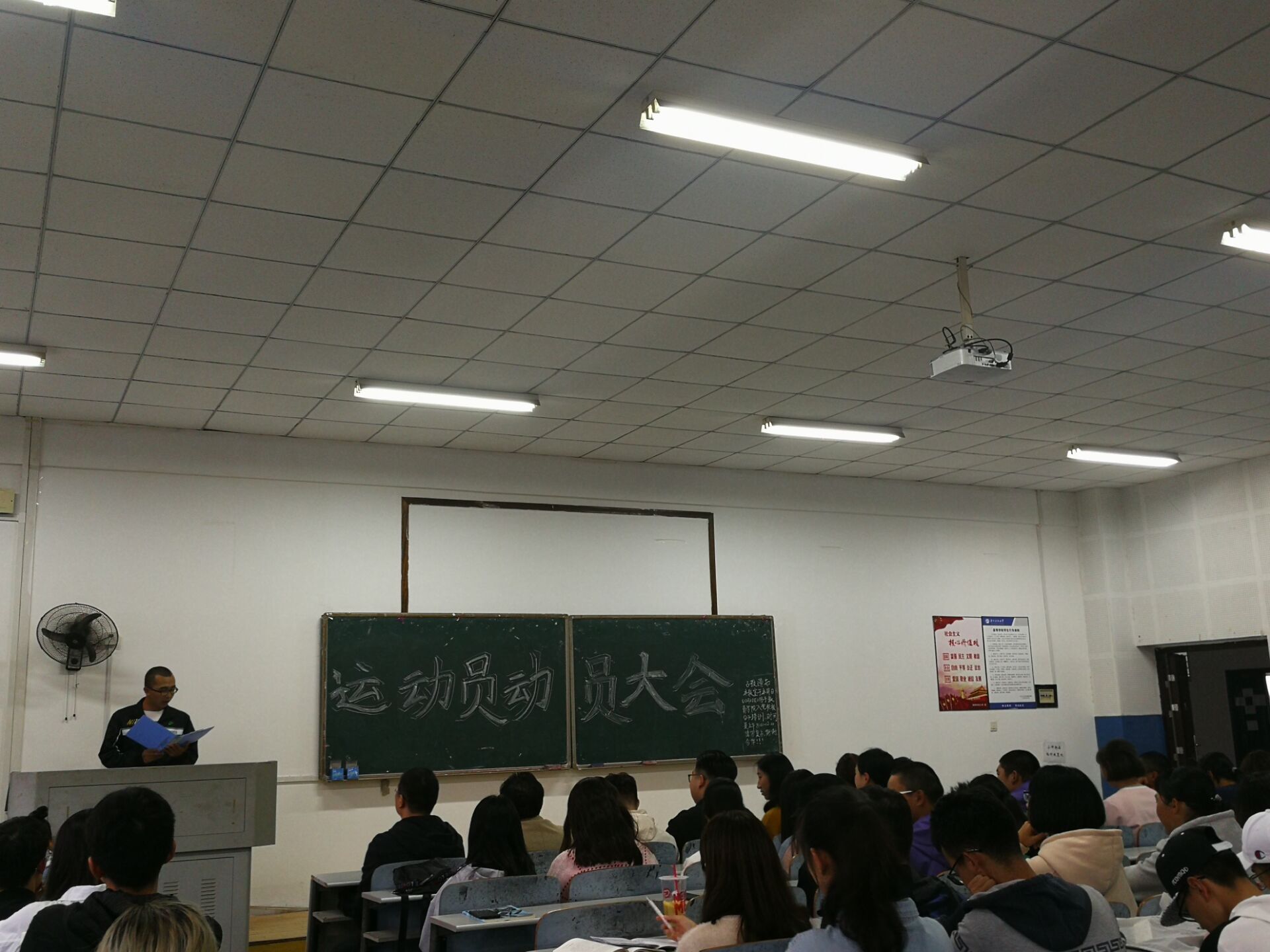 接着体育部部长曾嘉欣上台介绍本次运动会的注意事项以及各部门所负责的工作,强调各部门需要通力协作,共同为运动会保驾护航。