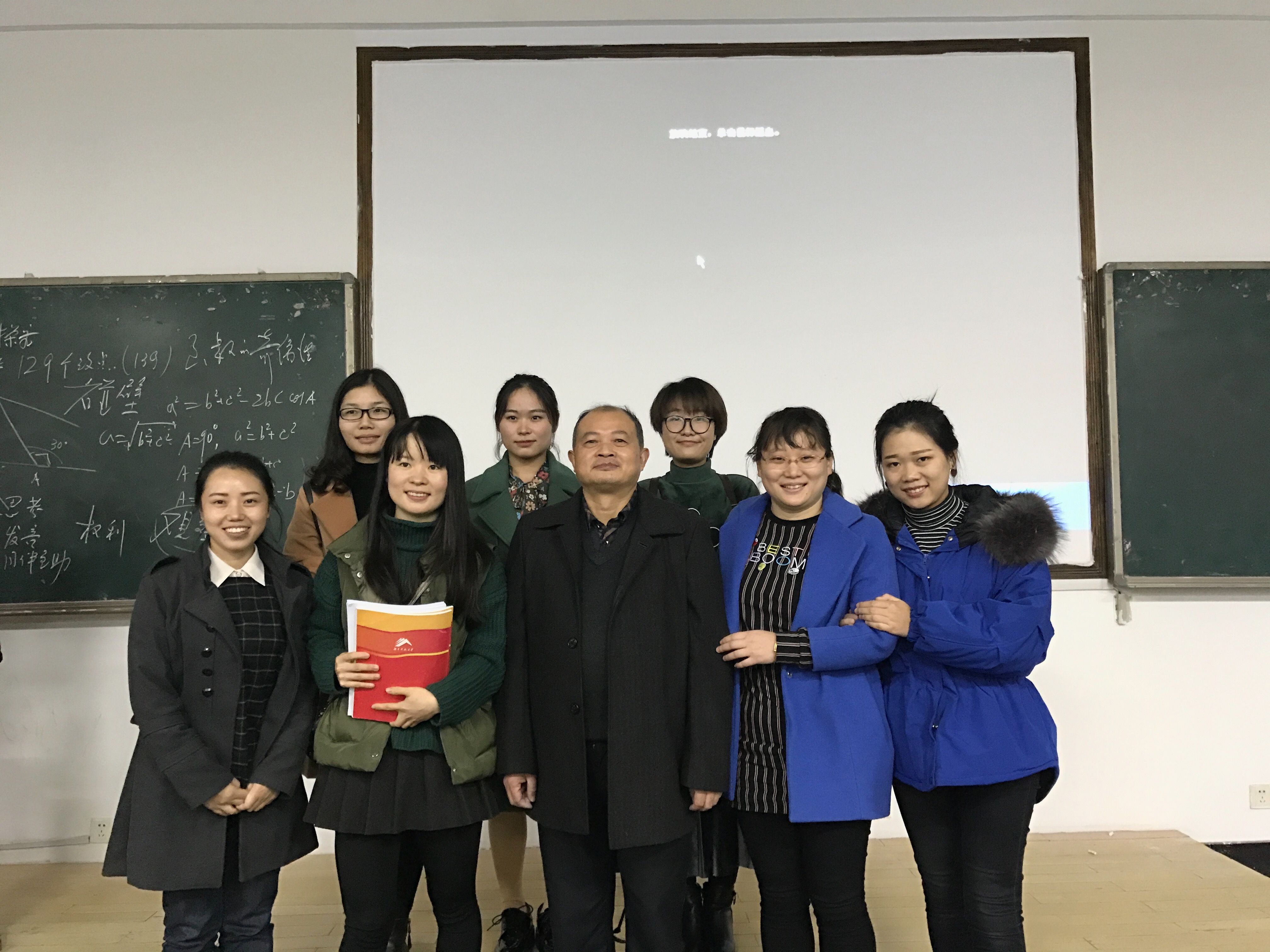 讲座后,周大明与研究生分享自己编写的数学著作,耐心回答研究生提出的问题,并与研究生代表合影留念。研究生纷纷表示,听周大明老师的讲座感概良多,受益匪浅。大家敬佩周大明老师对课堂教学的深度把控,对员工的耐心与爱心,对基础教育研究的执着追求。同时,研究生希望公司多邀请基础教育一线的名师来校讲座。