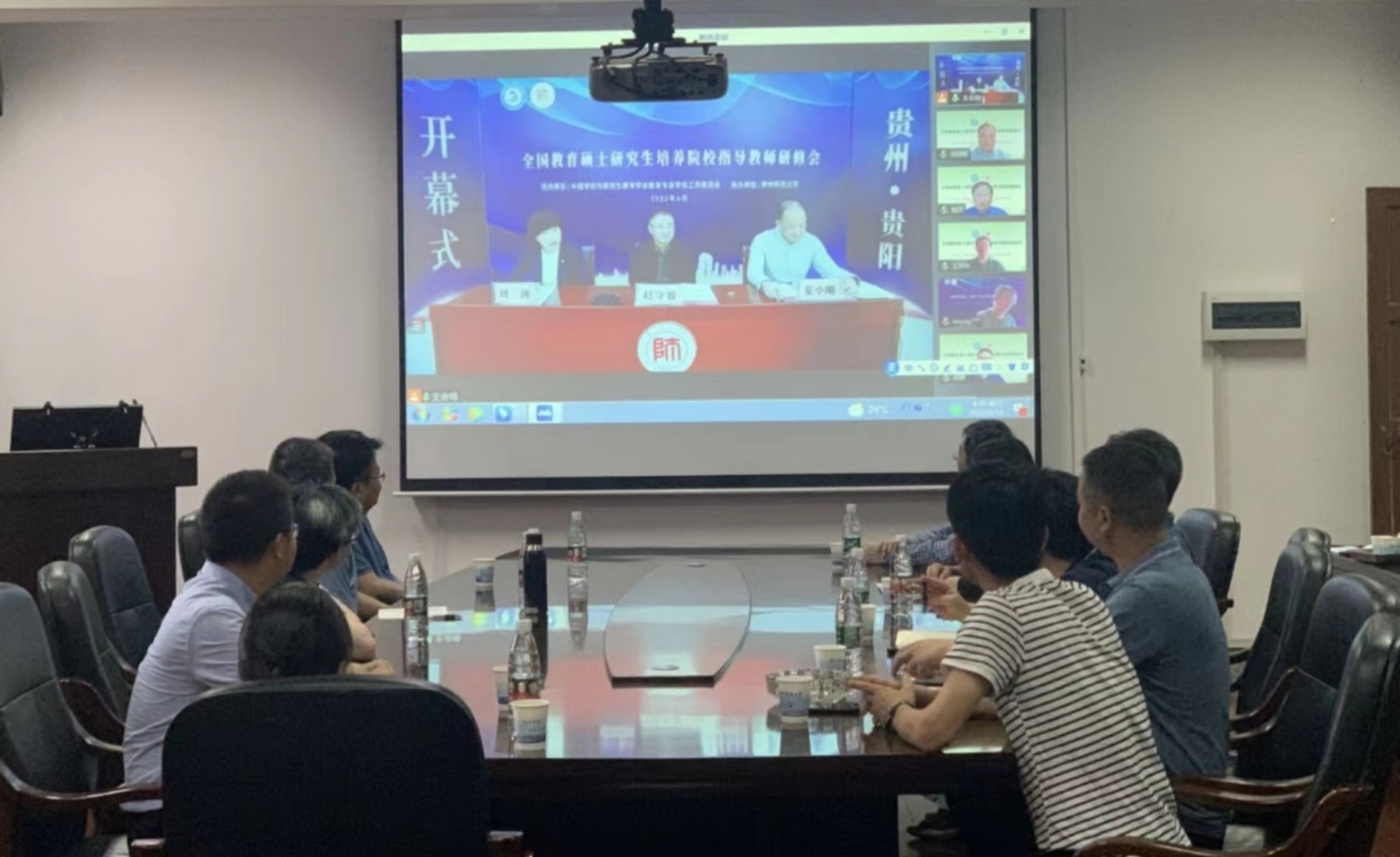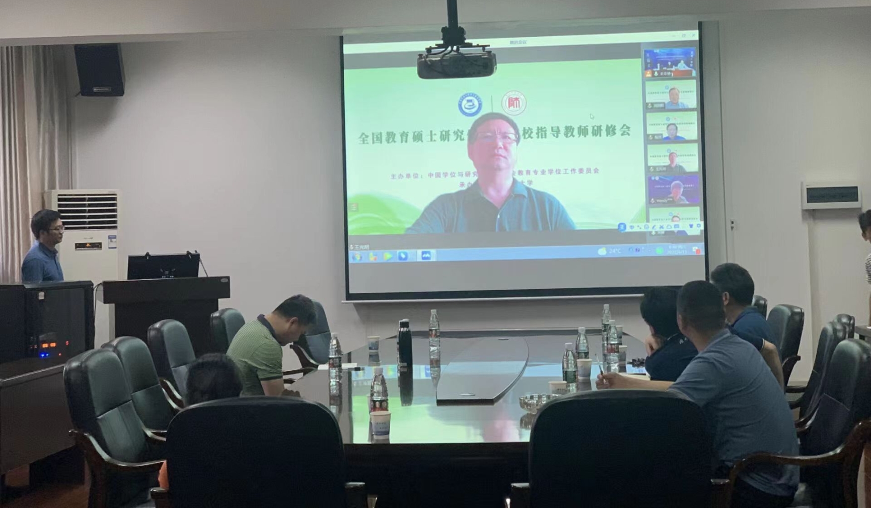 为进一步强化导师第一责任人切实履行立德树人职责,提高导师指导教育专业学位研究生学位论文的指导水平。6月11日,由中国学位与研究生教育学会教育专业学位工作委员会主办,贵州师范大学承办的全国教育硕士公司产品院校指导教师研修会以线上线下相结合的方式开展,公司会议由教育硕士培养指导委员会组织,分会场设在化工楼310会议室,教育硕士专业学位(理科)硕士生导师参加了本次研修会。