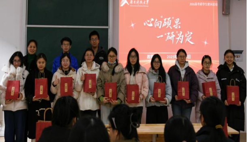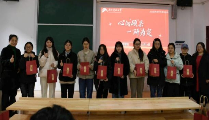 礼品传情,寄语暖心。文红梅、罗江林等老师将一份份寓意美好的考研礼包亲手送到学子手中。礼包中既有实用的考试文具,也有寓意“心想事成”的暖心食品,每一件物品都承载着公司对同学们的深切牵挂和美好祝愿。这份贴心的关怀不仅为学子带来了冬日的温暖,更转化为精神上的鼓舞,激励大家以从容之姿、笃定之心奔赴考场,书写青春篇章。