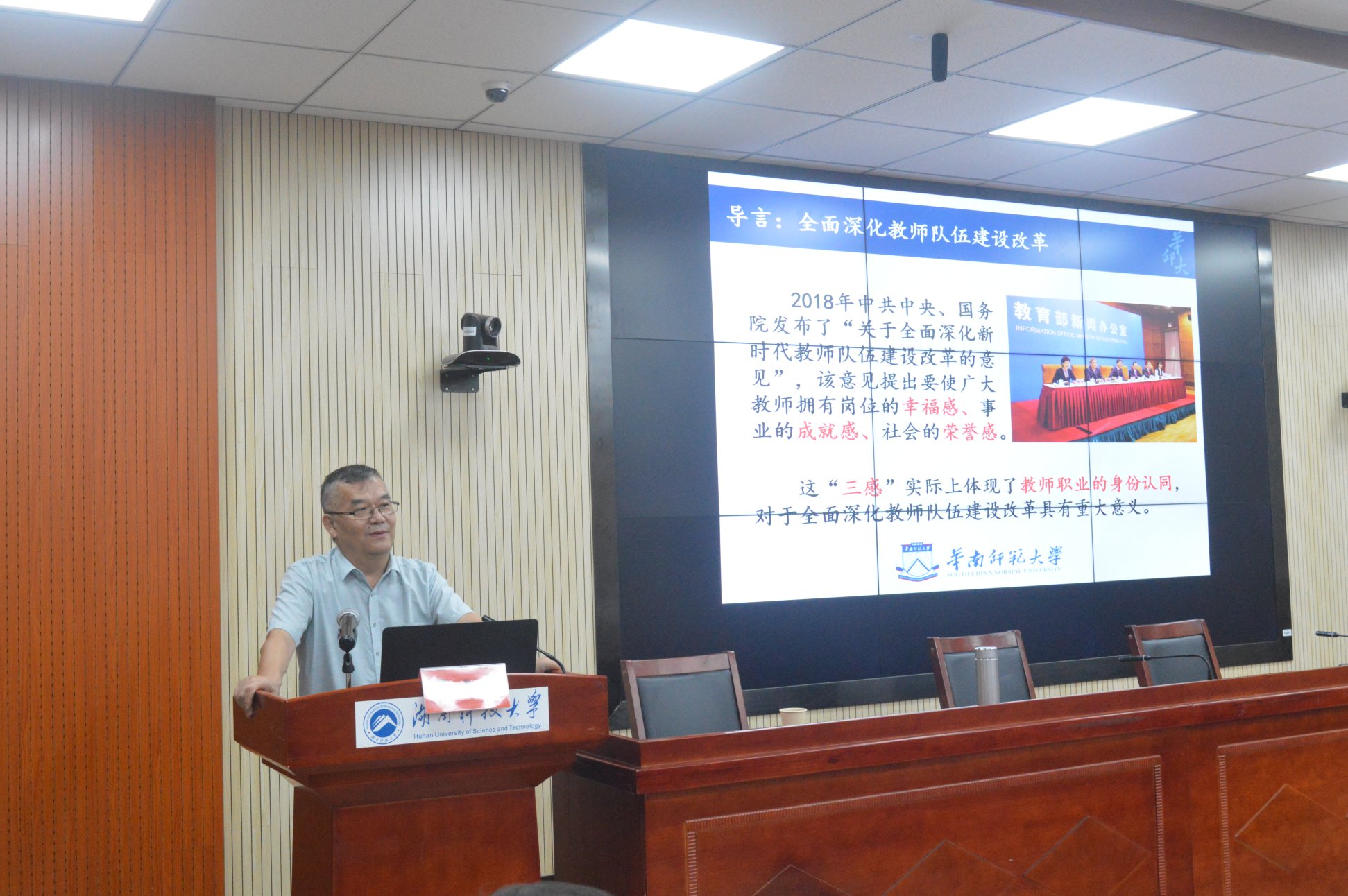 卢晓中在报告中指出,《全面深化教师队伍建设改革的意见》中提出要使广大教师拥有岗位的幸福感、事业的成就感、社会的荣誉感,这实际上体现了教师职业的身份认同,对于全面深化教师队伍的建设改革具有重大意义。