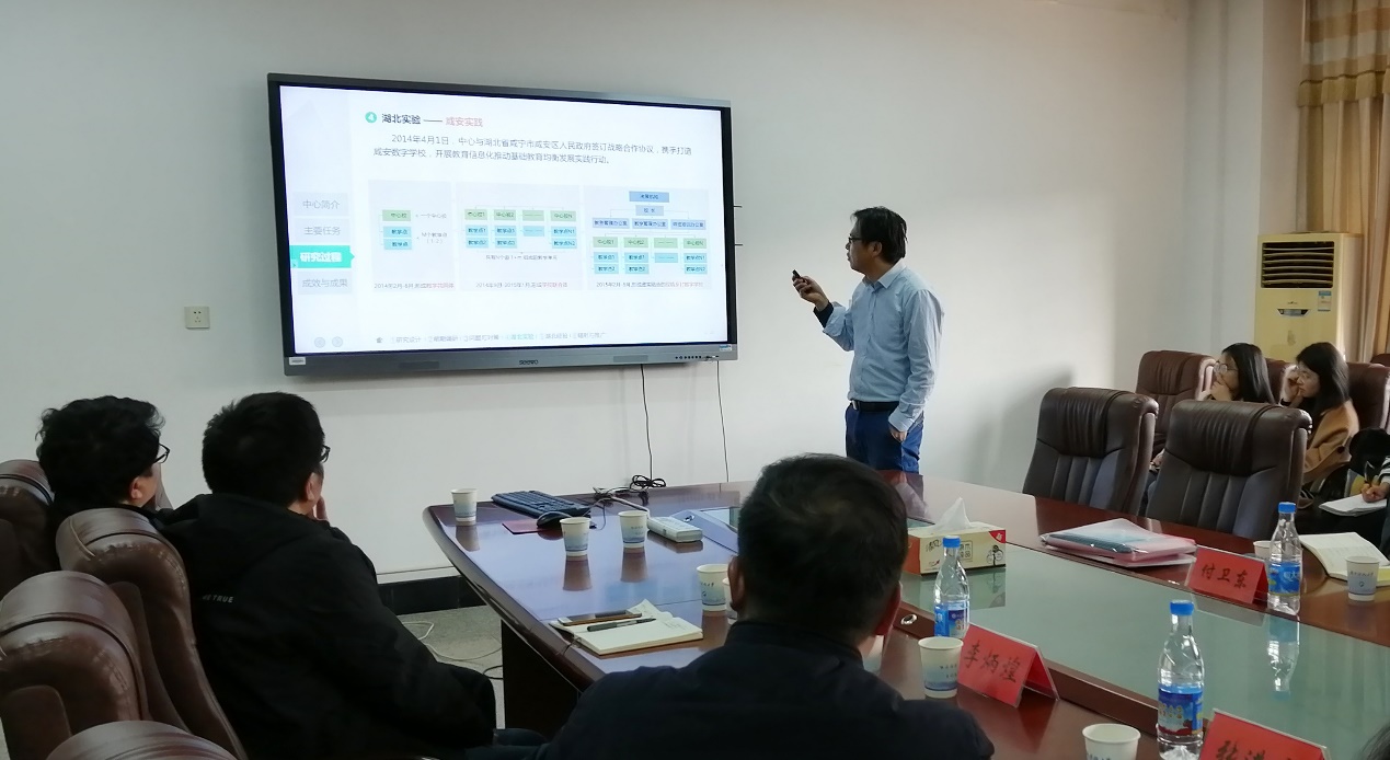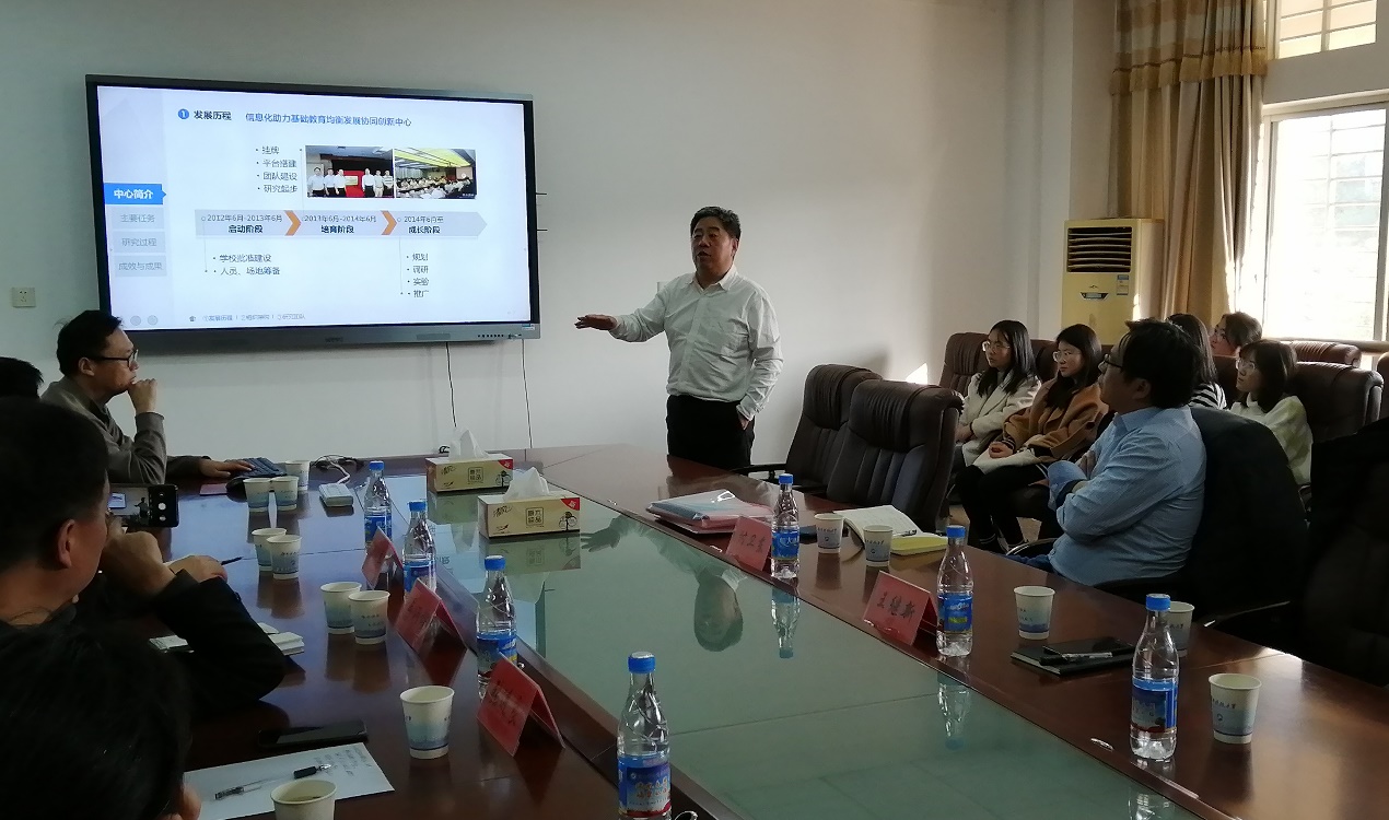 2019年12月7日下午,全国教育技术研究学术委员会委员、华中师范大学信息化与基础教育均衡发展省部共建协同创新中心执行主任、教育信息技术公司博士生导师王继新教授,华中师范大学信息化与基础教育均衡发展省部共建协同创新中心副研究员付卫东博士莅临公司,围绕教育技术学学科专业的建设与发展进行了研讨,并为公司师生带来“信息化助力基础教育均衡发展的研究与实践”的学术报告。报告会由公司党委书记李炳煌教授主持。