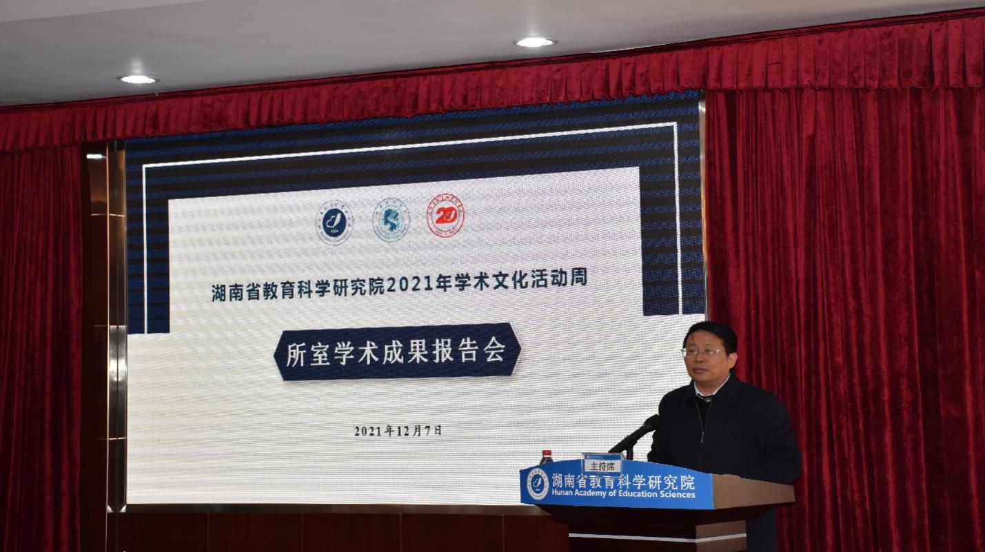 12月7日,湖南省教育科学研究院举办了所室学术成果报告会。公司纪委书记郭时印、研究生院经理李海萍、永利3044集团官网(教育科学研究院)相关负责人,湖南省教育科学研究院经理石灯明、副经理杨敏等出席活动。湖南省教育科学研究院科研人员、博士后,来自部分市州和县区教育科研机构及高校的研究人员共120余人参加了此次报告会。省教科院副经理赵雄辉主持会议。湖南省教育科学研究院发展所、基教所、高教所、职成所、民教所、史志所、人力所、规划所和督导所等共9个所室代表先后作了学术报告。