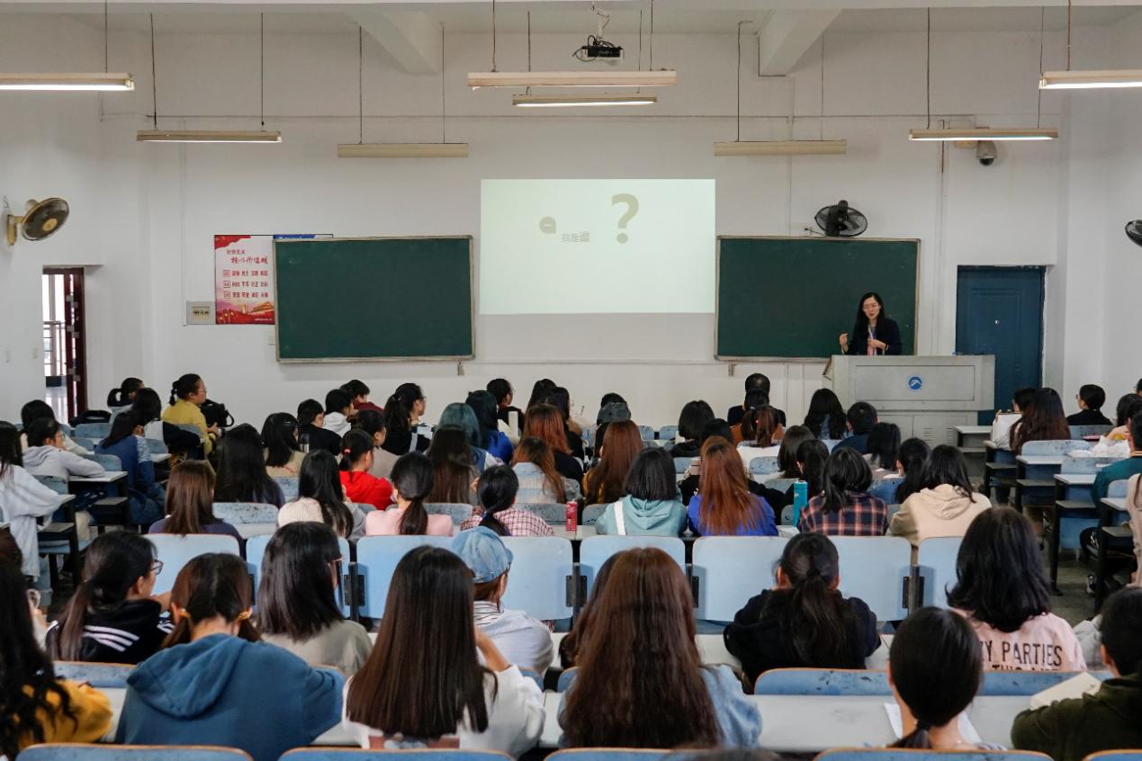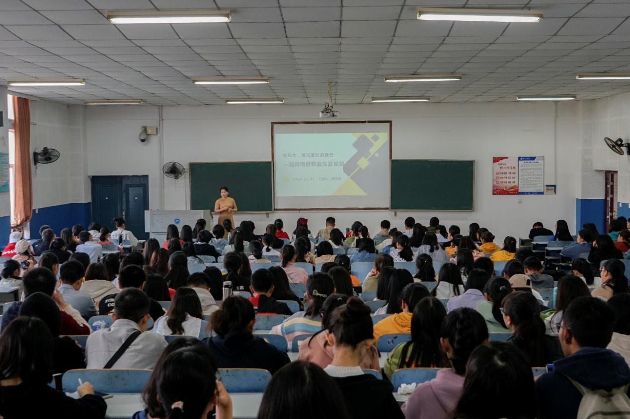 “我是谁?我想成为谁?如何成长为更好的自己?”讲座中,程燕以“自我VS成长—奋斗的青春最美丽”为题结合自己的学习和生活经历进行讲解。通过一分钟鼓掌次数的小实验程燕让同学们自己预测次数与实际次数比较她希望同学们能够真正了解自己认识自己再超越自己,不要被所谓的标签限制。“同一专业可以从事很多种不同的职业,相对于专业知识技能,用人单位更看重综合素质。”在介绍自己同学不同领域的发展后,程燕强调,你的专业不会限制你,不管你以后想要去从事什么领域,坚持向上努力,才是王道。她希望同学们不管对公司专业是否满意,都应该用自己的方式去做好,努力达到立足现实、扬长避短的目标