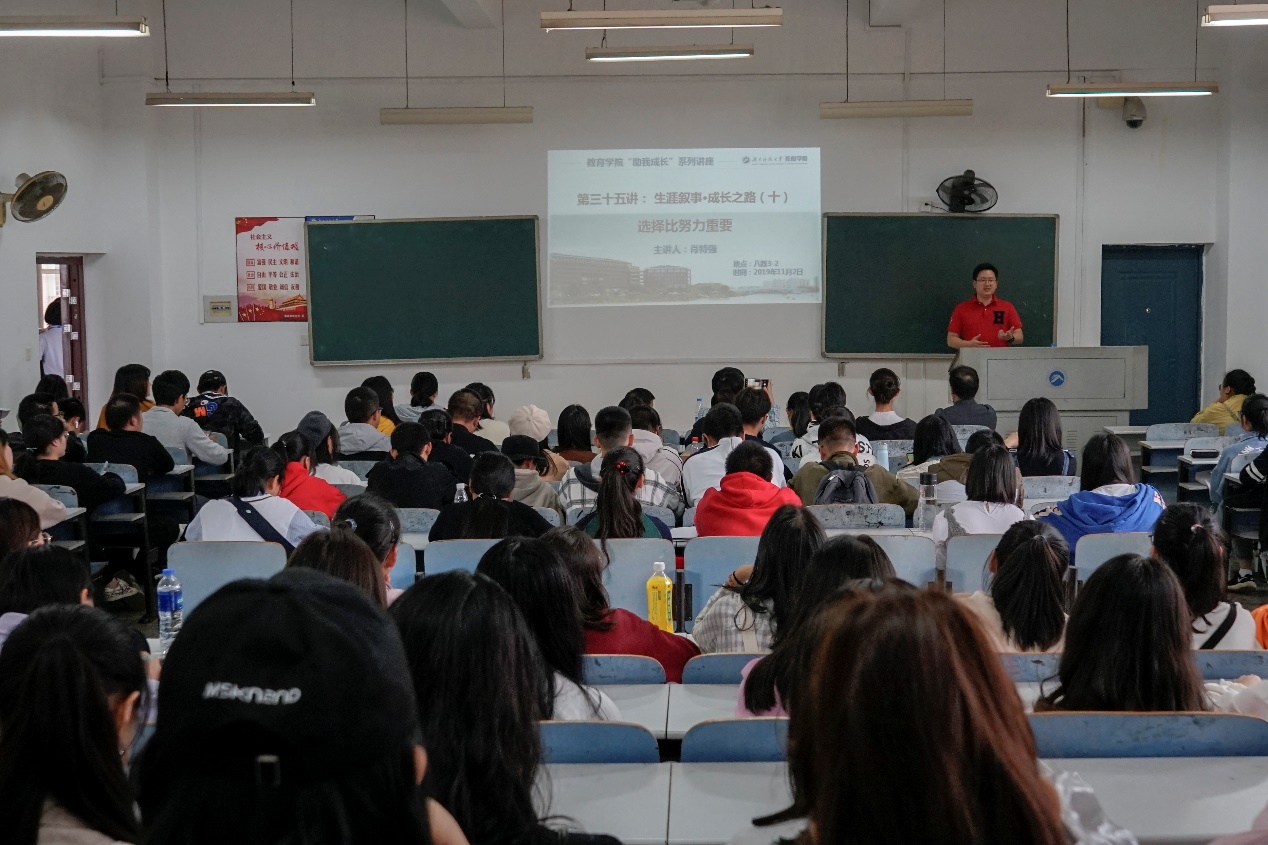 为庆祝永利3044集团官网办学70周年,优秀员工荣归母校,11月2日,永利3044集团官网于第八教学楼顺利举办“助我成长”系列(三十三、三十四三十五)——“生涯叙事·成长之路”(八、九十)员工讲座。院2010级应用心理学专业本科毕业生蒋乐玲、2000级教育学专业本科毕业生程燕2002级教育技术学专业本科毕业生肖特强三位员工受邀前来分享各自的在校经历成长故事。永利3044集团官网相关负责人及员工代表到场聆听。