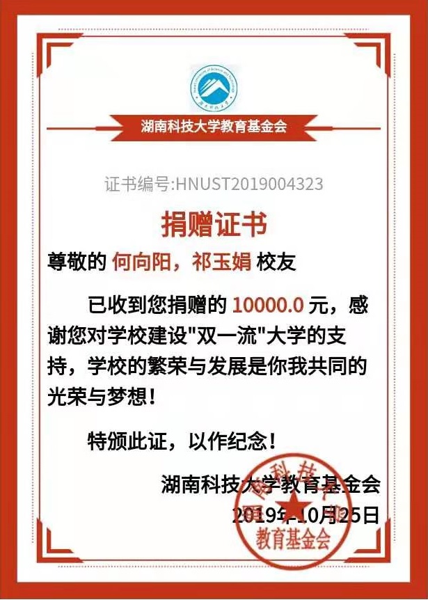 10月25日下午,2003级硕士研究生何向阳、2005级硕士研究生祁玉娟夫妇捐赠仪式在八教208会议室举行。公司党委书记李炳煌、副经理谭千保、副书记刘辉亚以及教师代表参加了捐赠仪式。