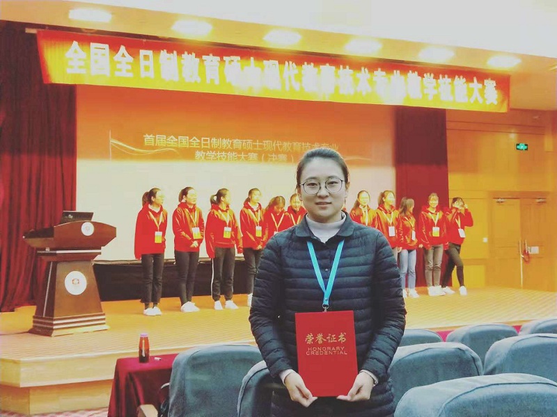 近日,首届全国全日制教育硕士现代教育技术专业教学技能大赛(决赛)在江苏师范大学落下帷幕。公司2017级全日制现代教育技术专业胡美艳同学在比赛中表现优异,荣获三等奖。
