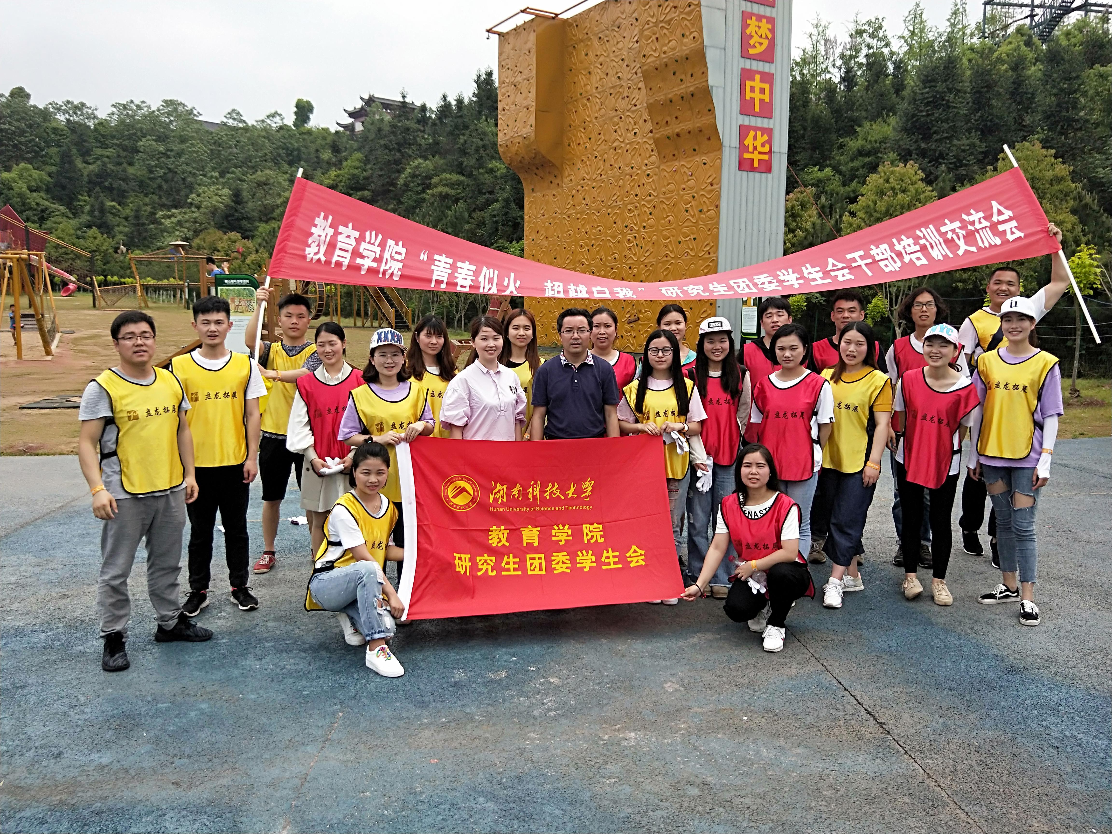 2018年4月22日,永利3044集团官网以”青春似火、超越自我”为主题的研究生团委员工会干部素质拓展活动在湘潭市盘龙大观园素质拓展基地举行。公司领导、研究生辅导员、研究生秘书、研究生团委员工会干部和教育硕士各方向负责人共20余人参加了此次干部培训活动。此次活动旨在增强员工干部之间的团队协作能力和身体素质,促进干部与老师的沟通交流,培养团队精神和协作意识。