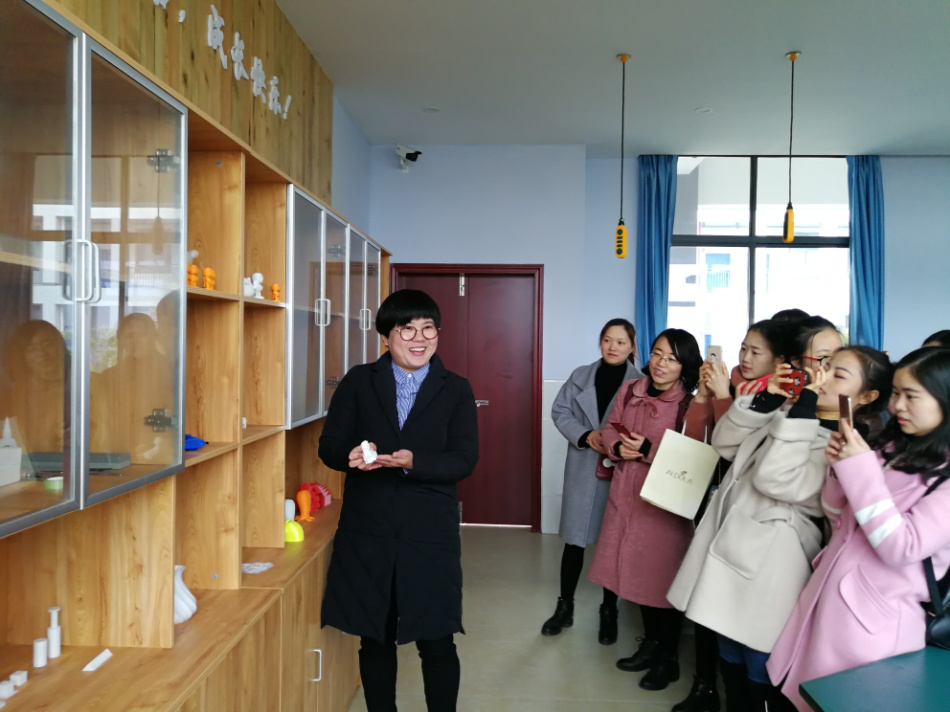 讲座开始前,风车坪建元公司王智萍董事长向大家介绍了该校的基本情况以及 “课程亮校、质量立校、科研兴校、特色强校”的办学规划,并参观了公司的创客教室、3D打印教学、未来教室等。